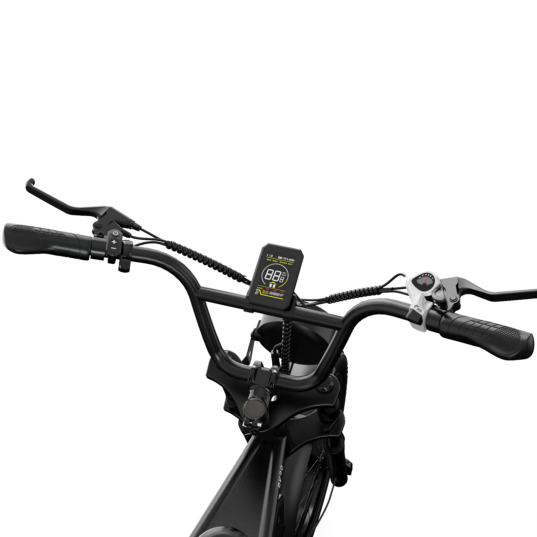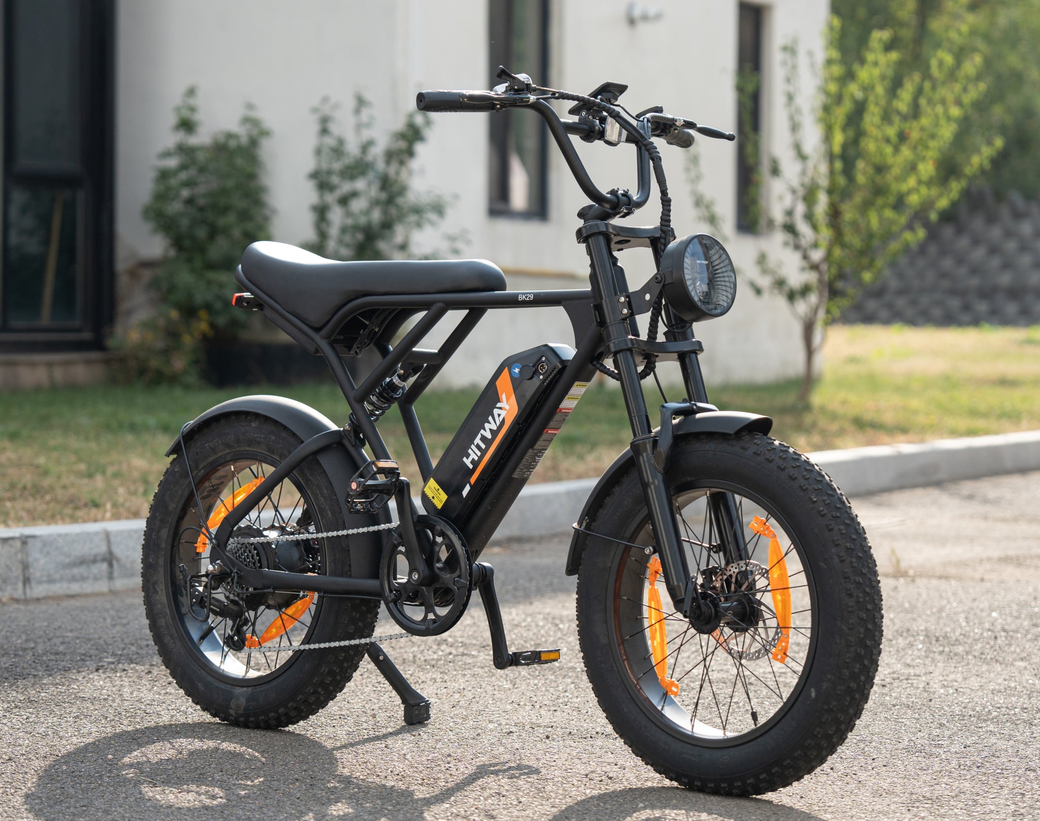 Das BK29 Elektrofahrrad verfügt über eine hochwertige Vorderradgabelfederung und einen zentralen Stoßdämpfer, der Stöße effektiv absorbiert und eine komfortable Fahrt auf jedem Gelände ermöglicht. Mit seinem stilvollen Retro-Motorrad-Design ist dieses E-Bike nicht nur funktional, sondern auch ein echter Hingucker.