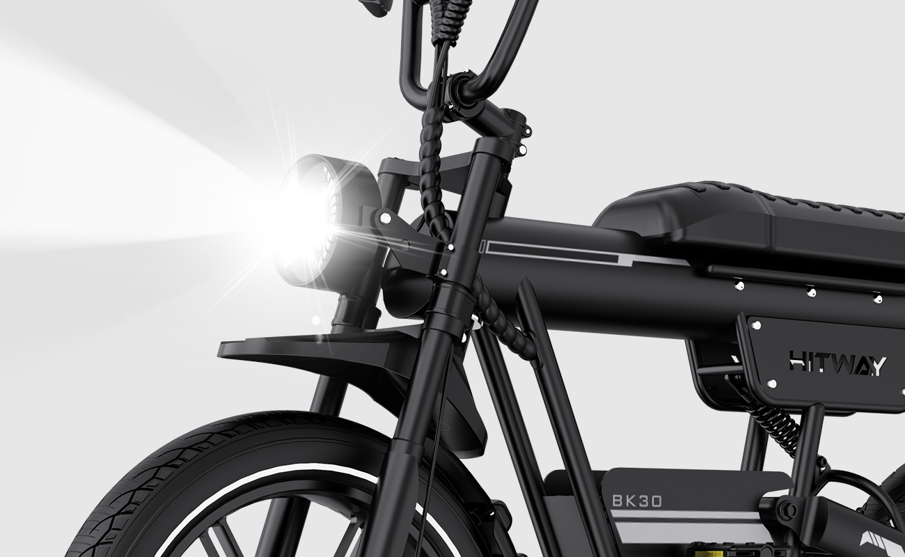The powerful front light ensures clear visibility during night rides or low-light conditions, illuminating the road ahead and enhancing your safety.