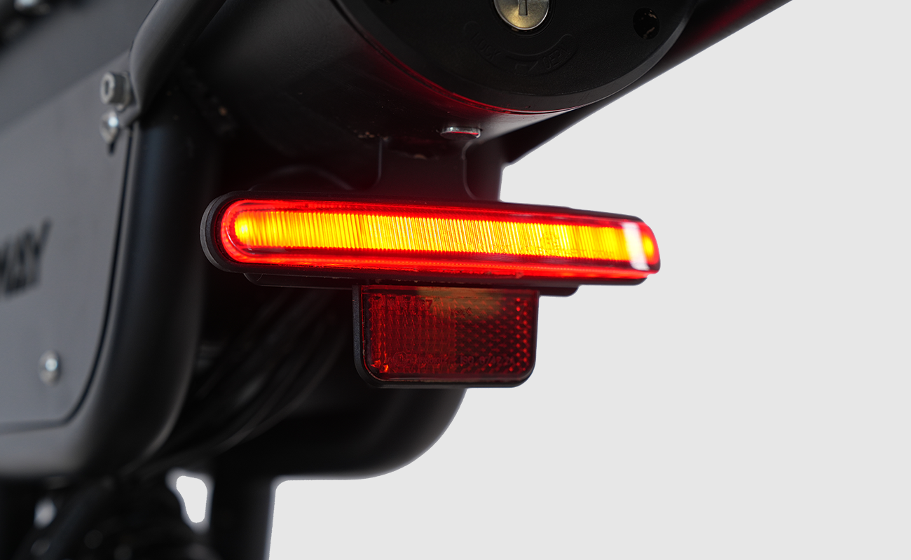 The rear light automatically brightens when braking, alerting others on the road and providing extra safety during night or city riding.