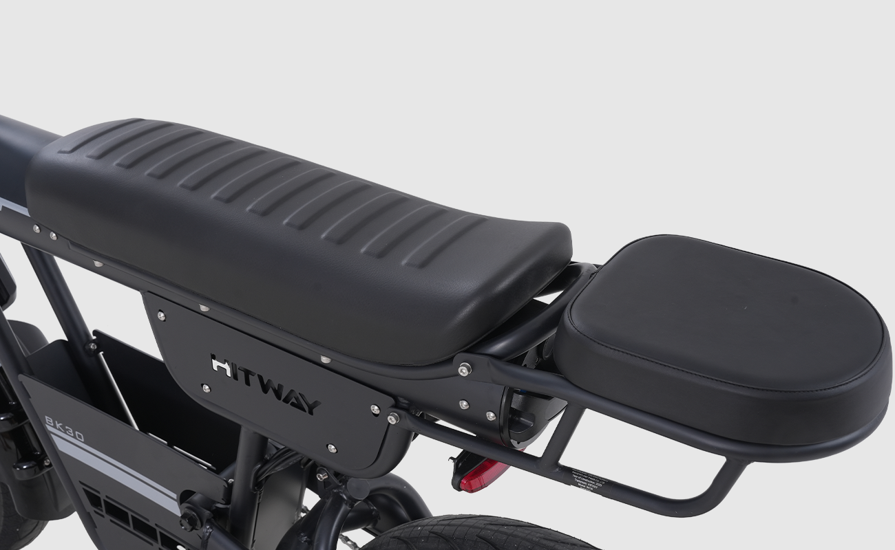 A soft, ergonomic saddle enhances overall riding comfort, even on longer trips. Its wide design provides enough space for carrying a passenger or extra cargo when needed.