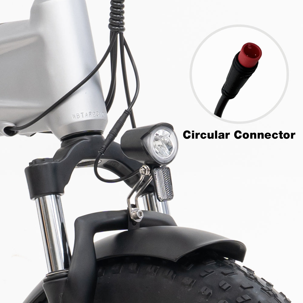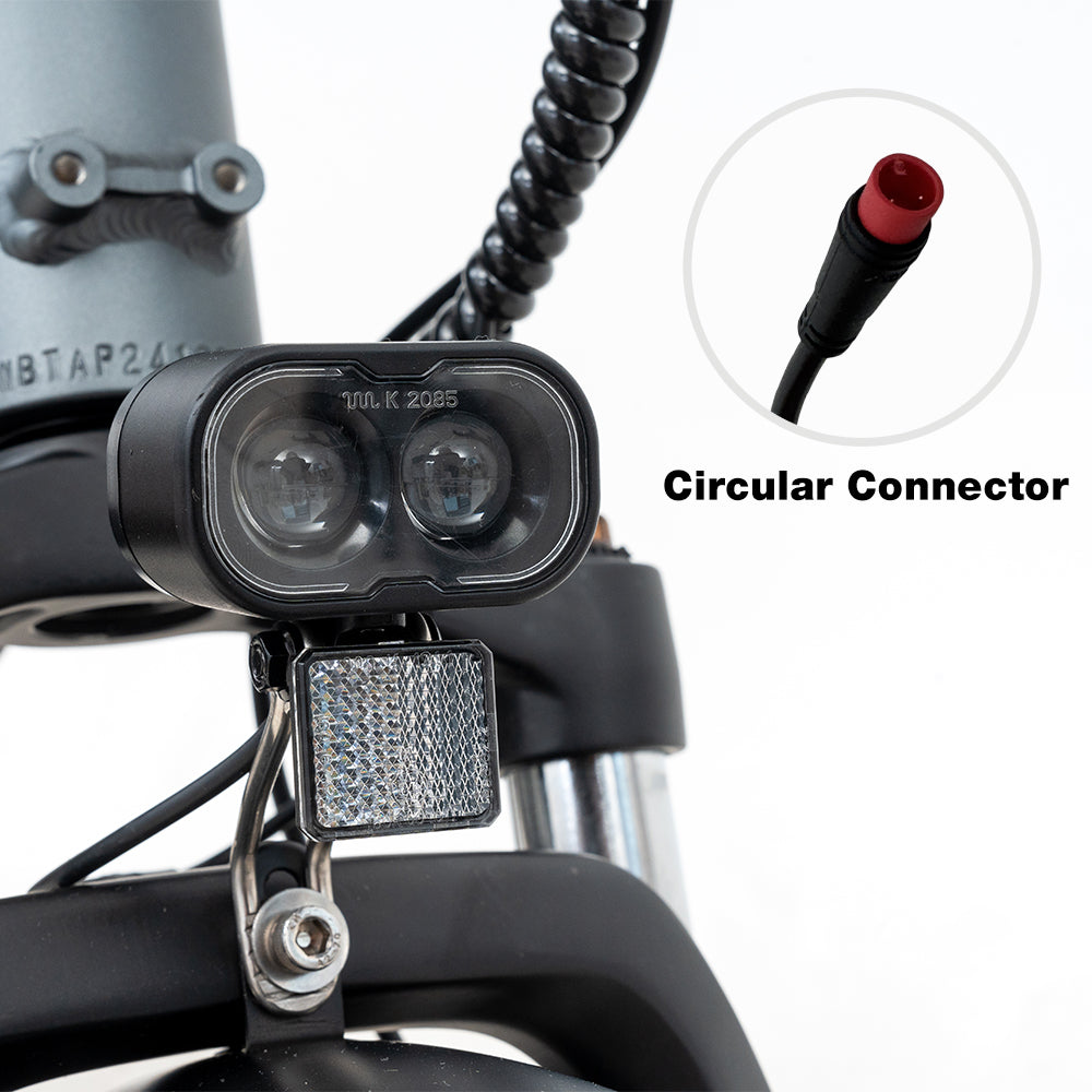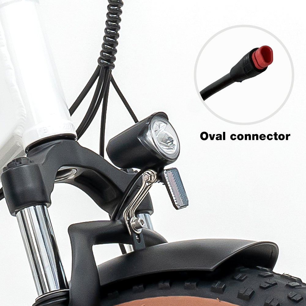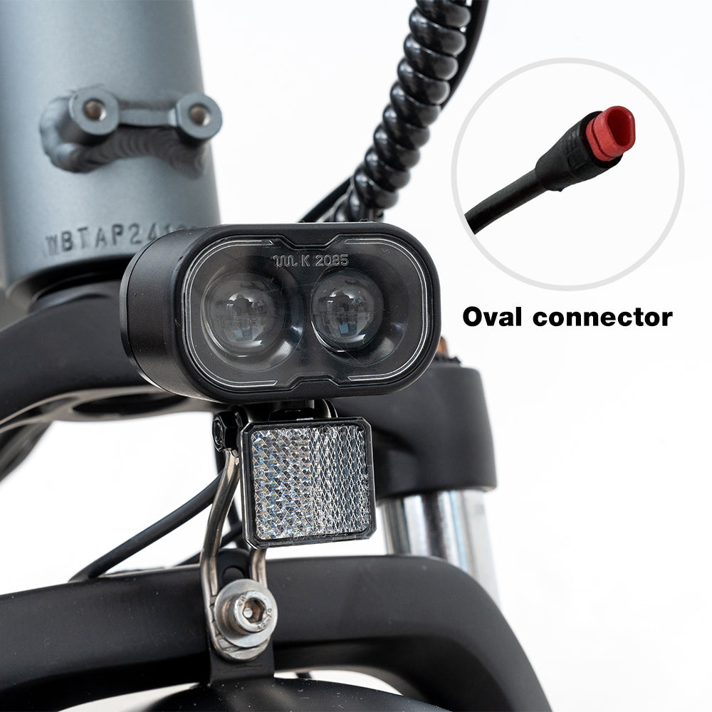 Das Elektrofahrrad Frontlicht hat zwei Steckertypen: kreisförmig Und OvalBitte überprüfen Sie vor dem Kauf sorgfältig Ihr Originallicht und den Stecker. Auch innerhalb desselben E-Bike-Modells können Aussehen und Steckerform des Frontlichts variieren.