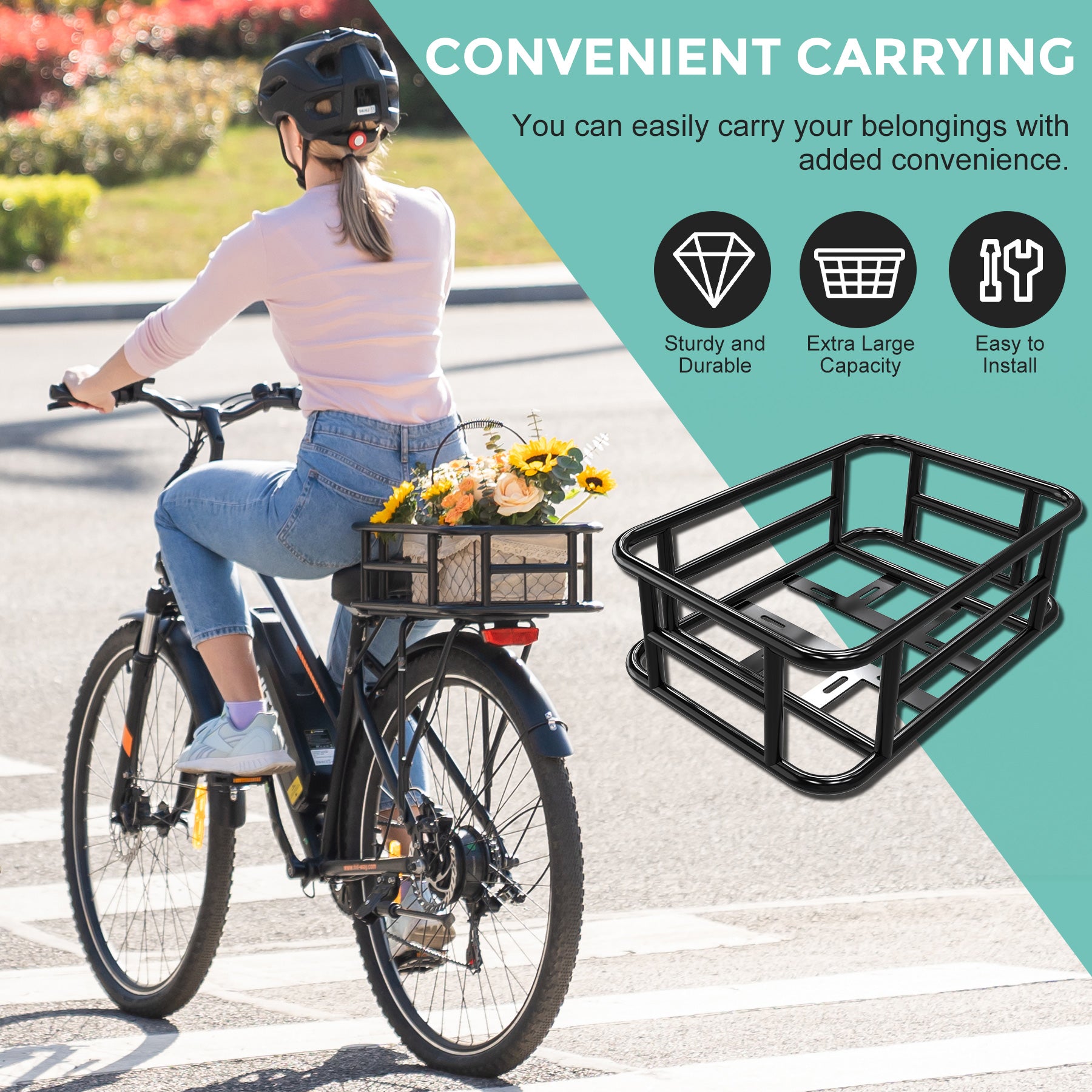 Che tu stia andando al lavoro, facendo commissioni o intraprendendo un breve viaggio, questo cestino può trasportare facilmente borse, verdure, caschi e altro ancora, liberando le mani e aumentando la comodità del viaggio.