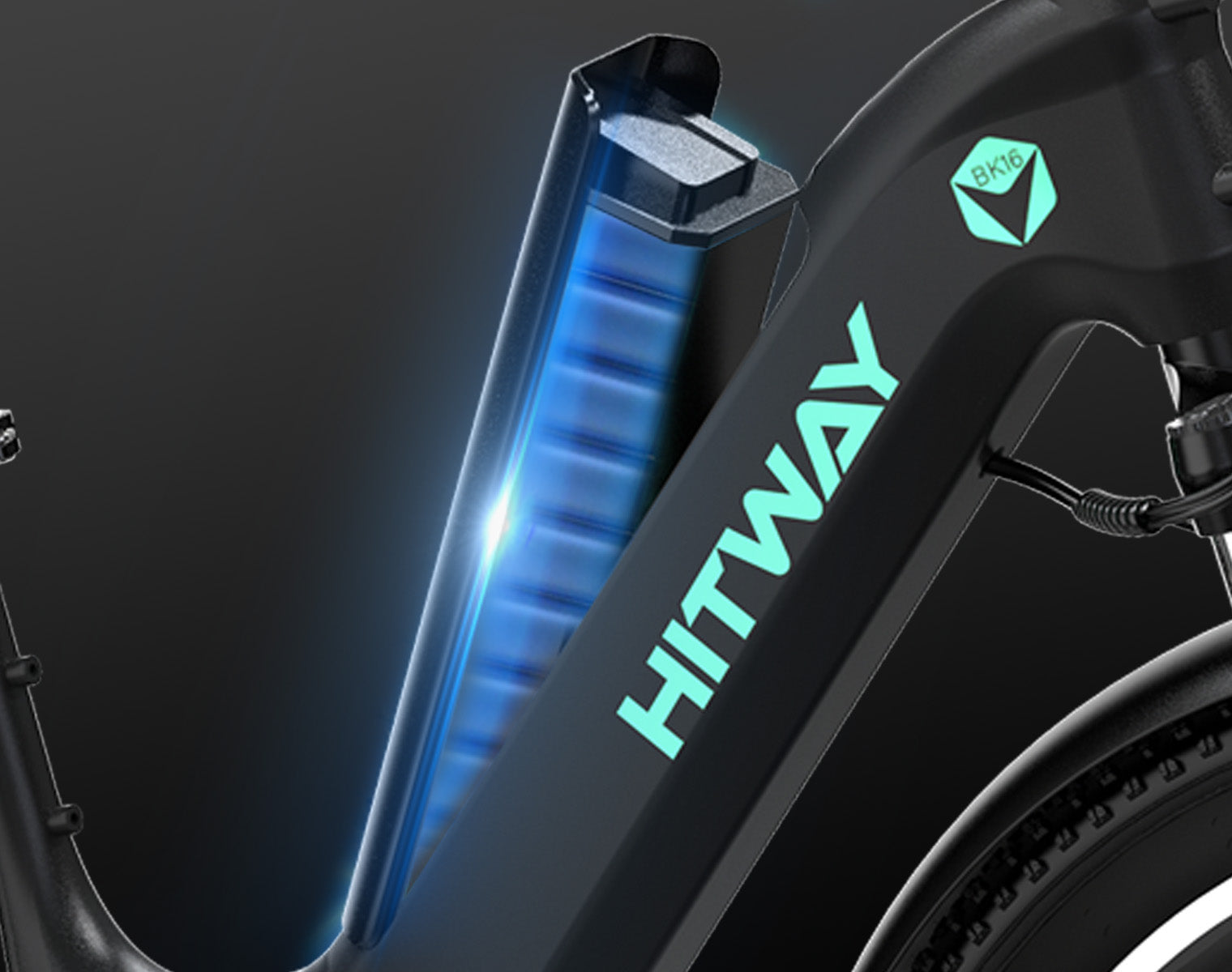 La e-bike HITWAY BK16 è dotata di una batteria rimovibile da 48 V 18 Ah, facilmente ricaricabile ovunque e in qualsiasi momento. La batteria è perfettamente integrata nel telaio, conferendo un look elegante alla bici e garantendo un'eccellente autonomia di 70-120 chilometri per carica, a seconda delle condizioni di guida.