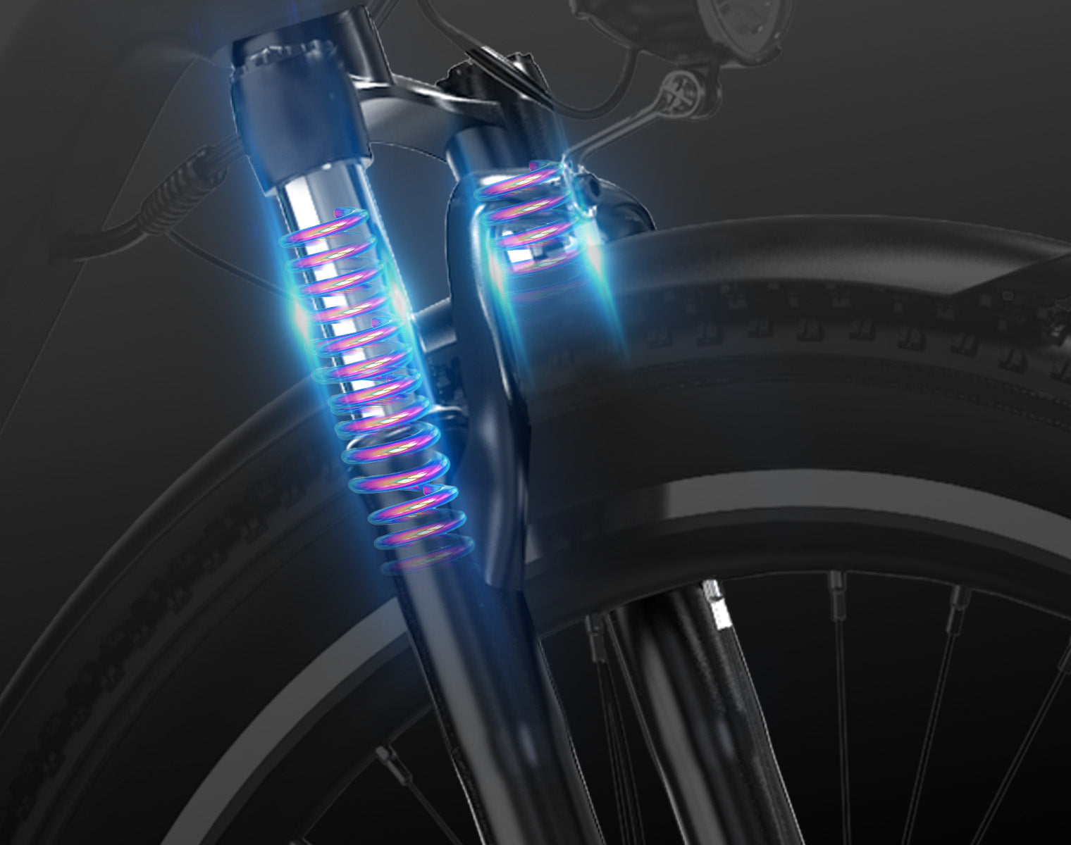 La bici elettrica BK16 è dotata di una forcella anteriore ammortizzata di alta qualità, che assorbe efficacemente le asperità. Sperimenta stabilità e controllo migliorati, sia sulle strade cittadine che sui sentieri accidentati.