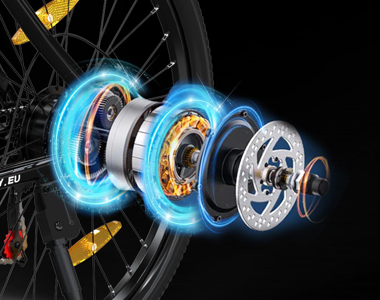 The 250W motor provides smooth and efficient power, fully compliant with EU regulations for electric bikes. Equipped with a 3-level Pedal Assist System (PAS), it lets you choose your speed based on your needs: PAS 1 offers a gentle 15 km/h, PAS 2 reaches a comfortable 20 km/h, and PAS 3 accelerates to the top speed of 25 km/h. This range of assistance levels supports versatile riding, whether for relaxed commutes or a quicker pace on open roads.