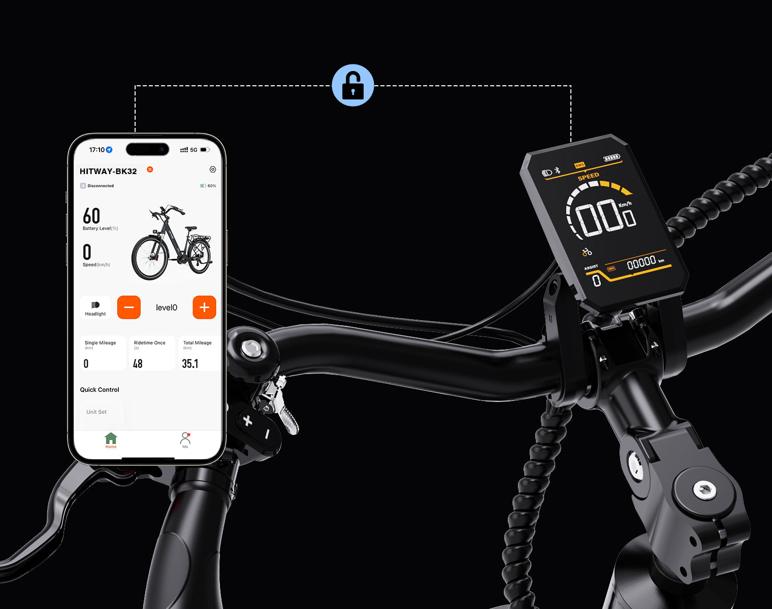 Stay connected with the intelligent Bluetooth LCD display that shows your speed, mileage, and battery status in real time. Sync with the HITWAY App to track your routes, analyze performance data, and personalize your riding experience — all from your smartphone.