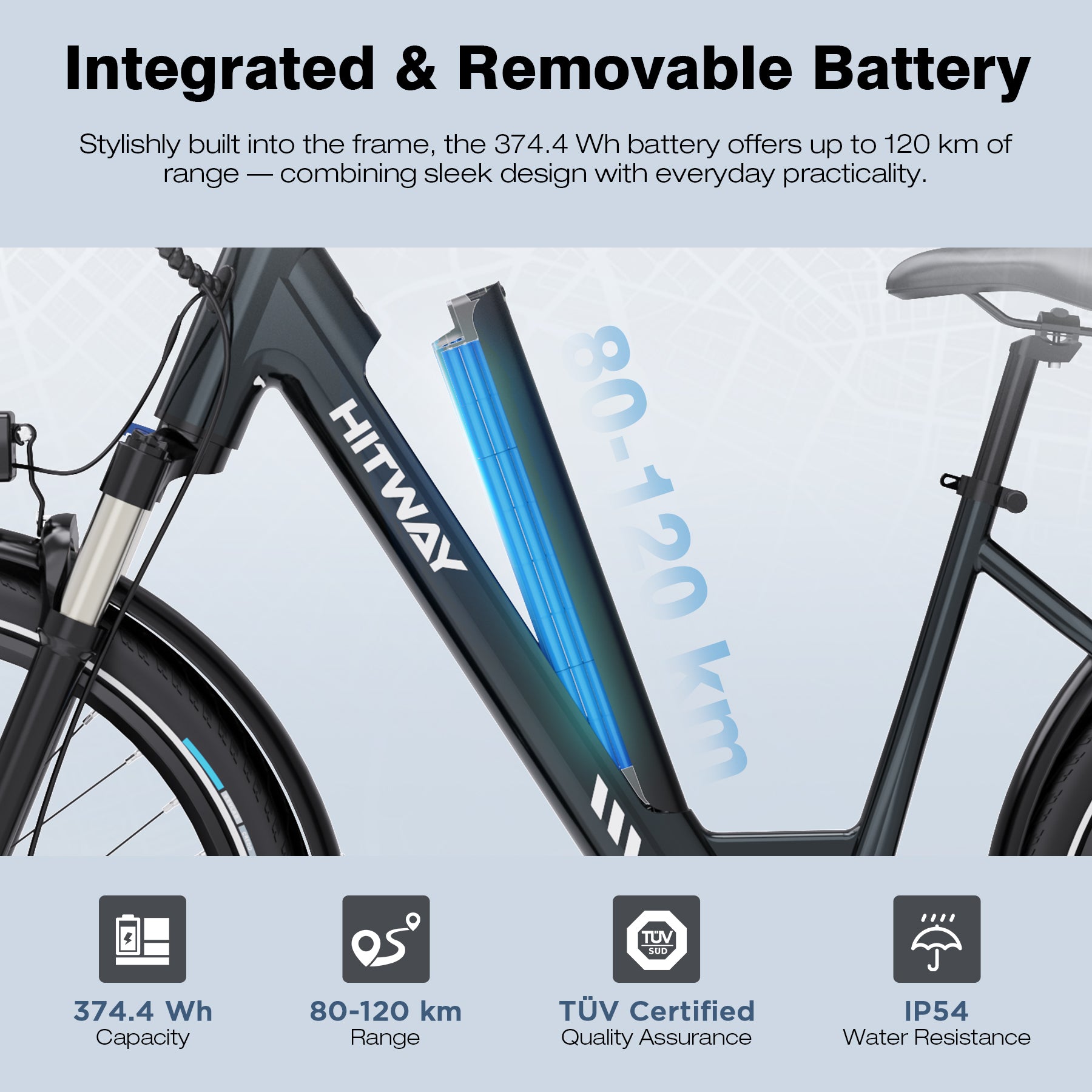Enjoy both elegance and practicality with a 374.4Wh lithium battery seamlessly integrated into the frame. Ride up to 80-120 km on a single charge, and easily remove the battery for convenient recharging. TÜV-certified for safety and quality, the BK32 is built to support your daily commute and weekend adventures.