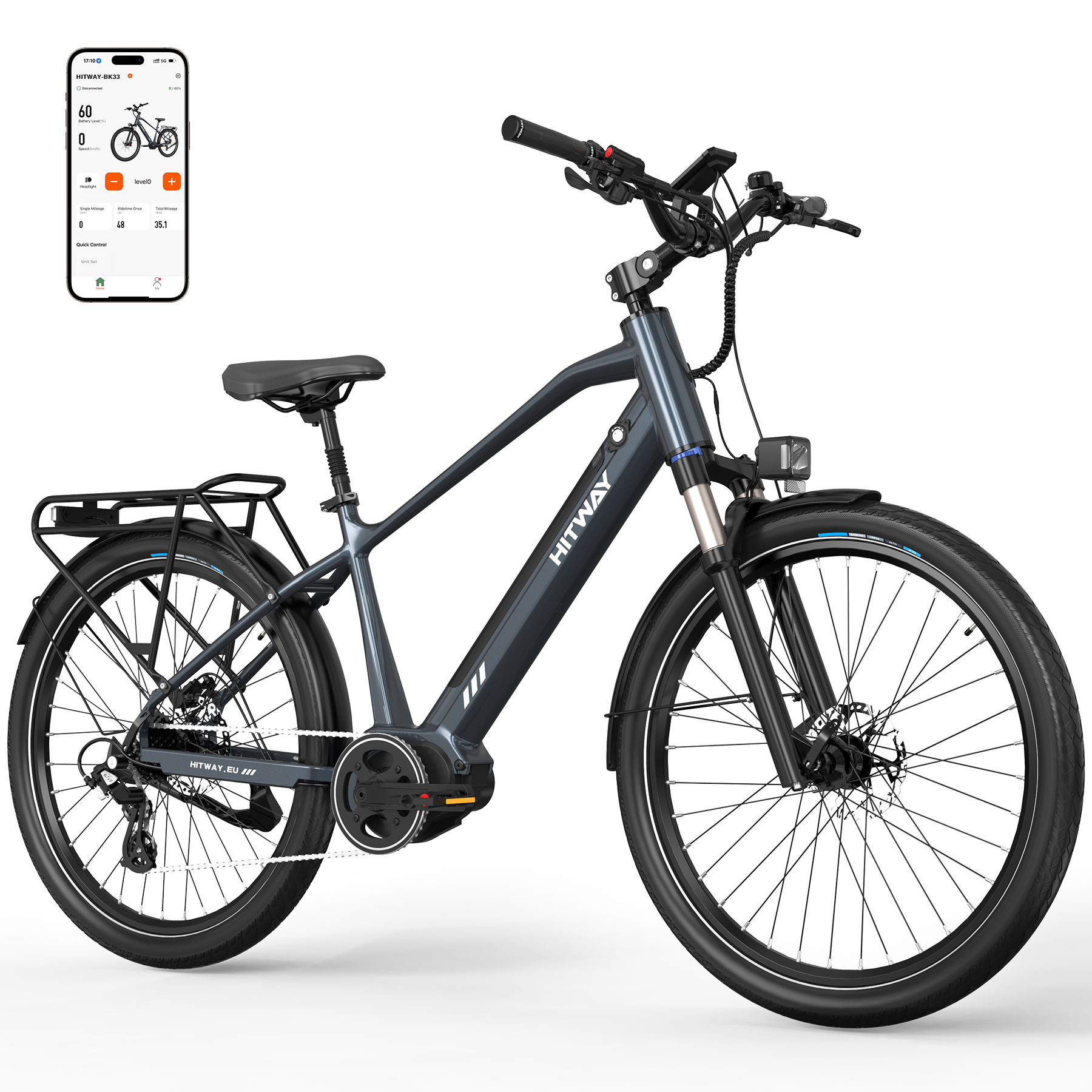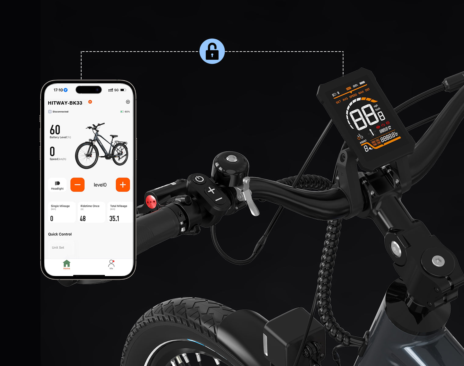 Stay connected with the intelligent Bluetooth LCD display showing speed, mileage, and battery status in real time. Sync with the HITWAY App to track routes, analyze performance data, and personalize your riding experience — all from your smartphone.
