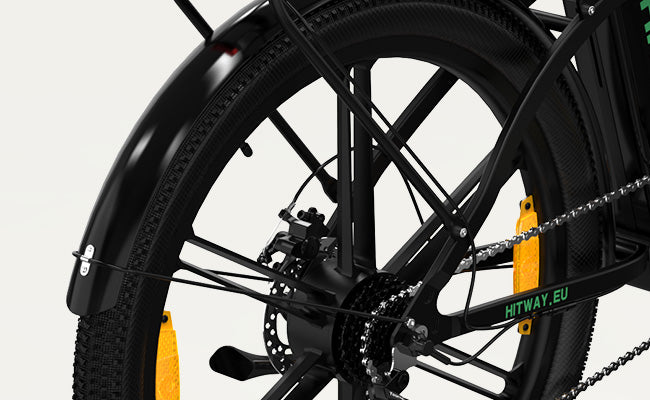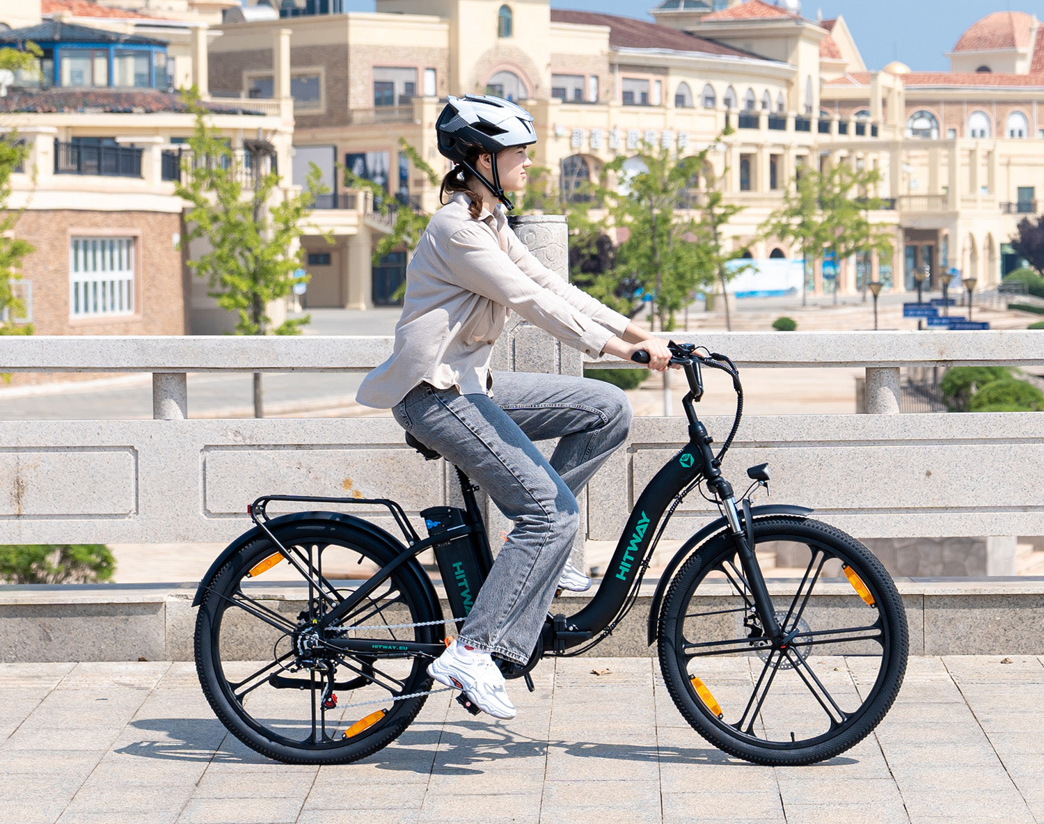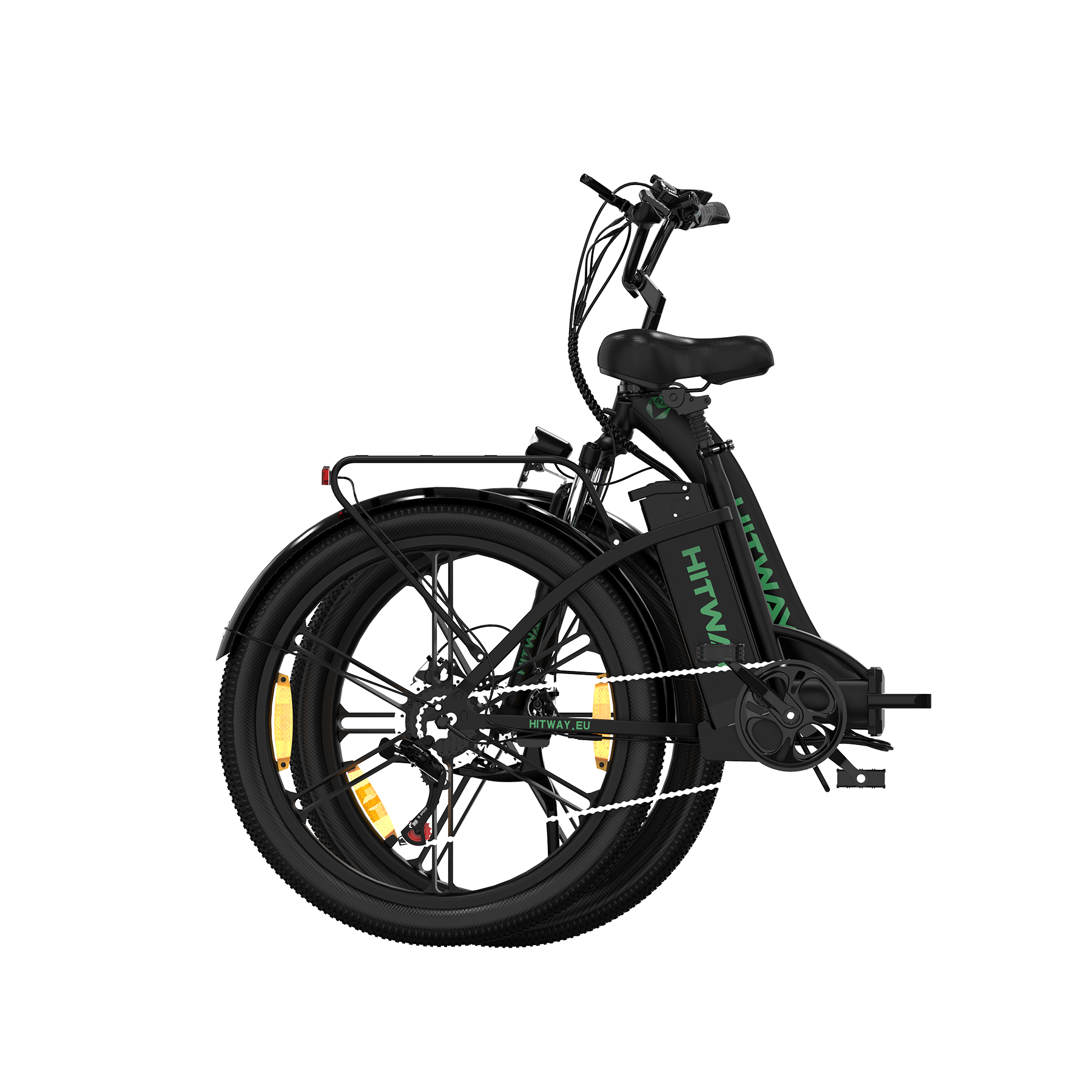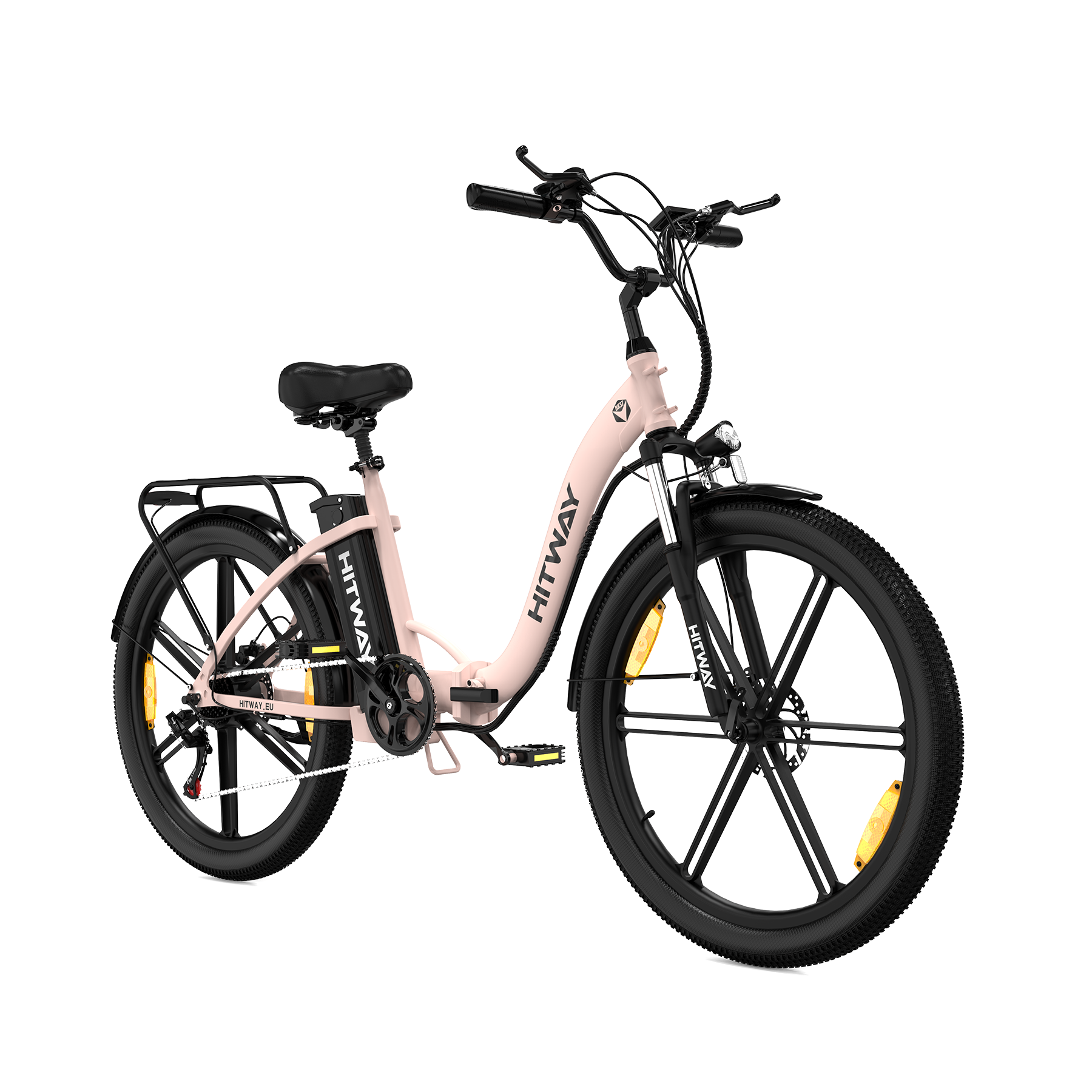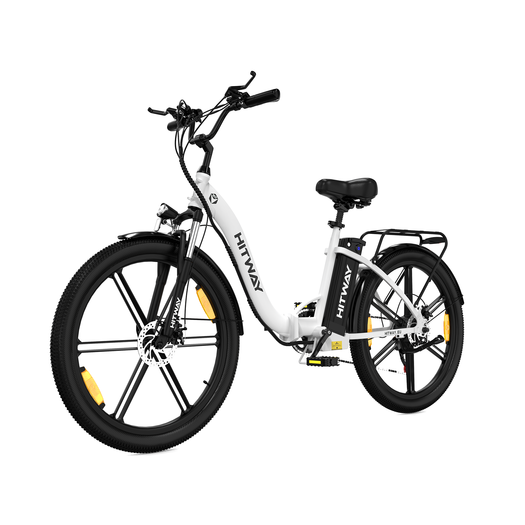 The HITWAY BK37 electric bike excels as a commuter bicycle with essential features. It includes dual disc brakes for reliable stopping power, a dual lighting system for night rides, Shimano 7-speed drivetrain for effortless pedaling, a rear rack for carrying gear, and fenders for mud protection. Equipped with a sleek LCD for real-time ride information and a mid-step frame for stability and easy mounting, it combines practicality with a stylish design.