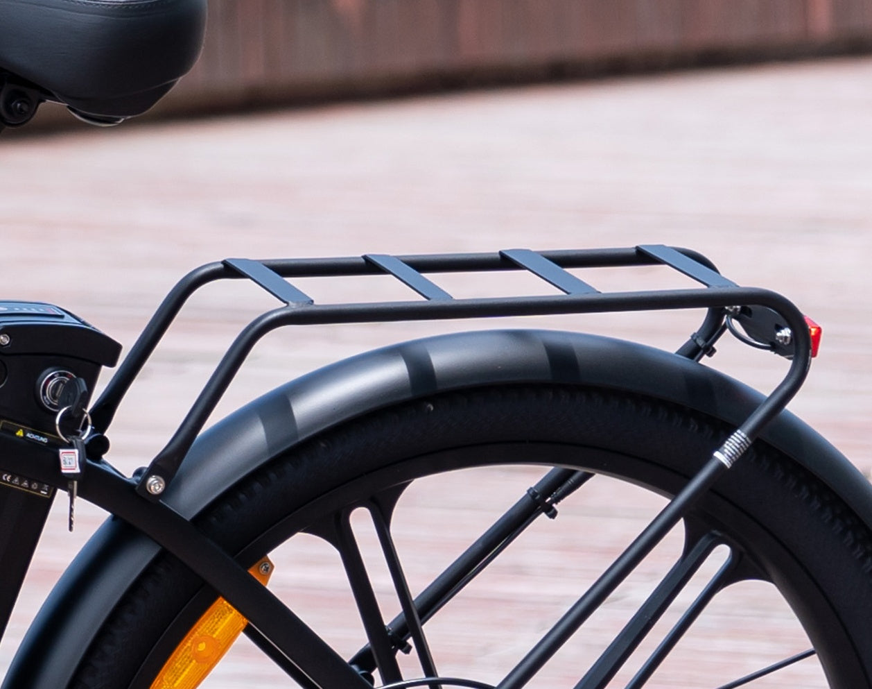 The BK37 ebike luggage rack measures 30.5*14 cm, providing enough space for a basket or side bag. This convenient feature enhances the functionality of your bike, making it easier to carry groceries or other necessities during your ride.
