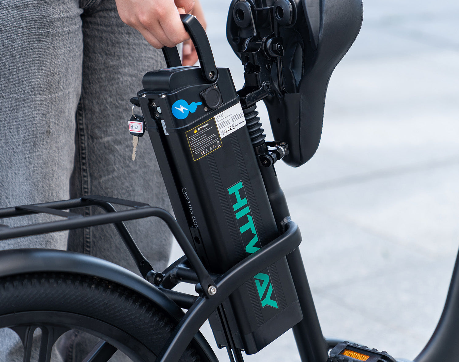 The 36V 10.4Ah(374.4Wh) battery provides increased capacity for longer journeys. Conveniently located under the seat, it can be easily removed by folding the saddle. The battery features a dedicated lock, offering enhanced security and anti-theft protection.