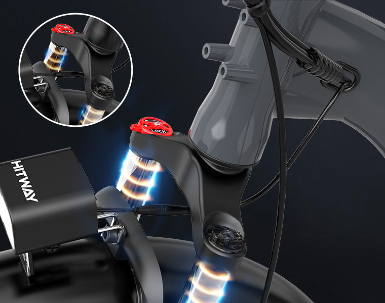 The BK6S L1 electric bike features a front suspension fork with a lockout function, allowing you to switch between smooth shock absorption on rough terrain and a rigid fork for efficient riding on flat roads. This ensures comfort and control no matter where your ride takes you.