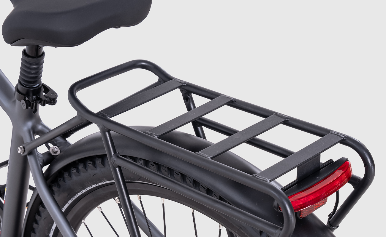 Designed with your comfort and safety in mind: front and rear lights compliant with German StVZO standards, a durable aluminium alloy frame, a rear rack for daily essentials, and reflective wheel strips for enhanced visibility at night—making every ride safe and stylish.