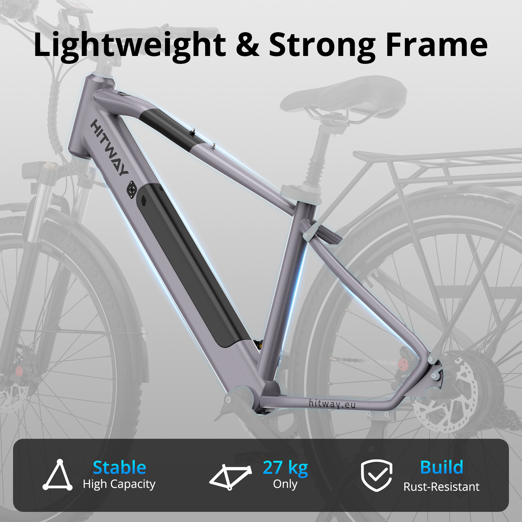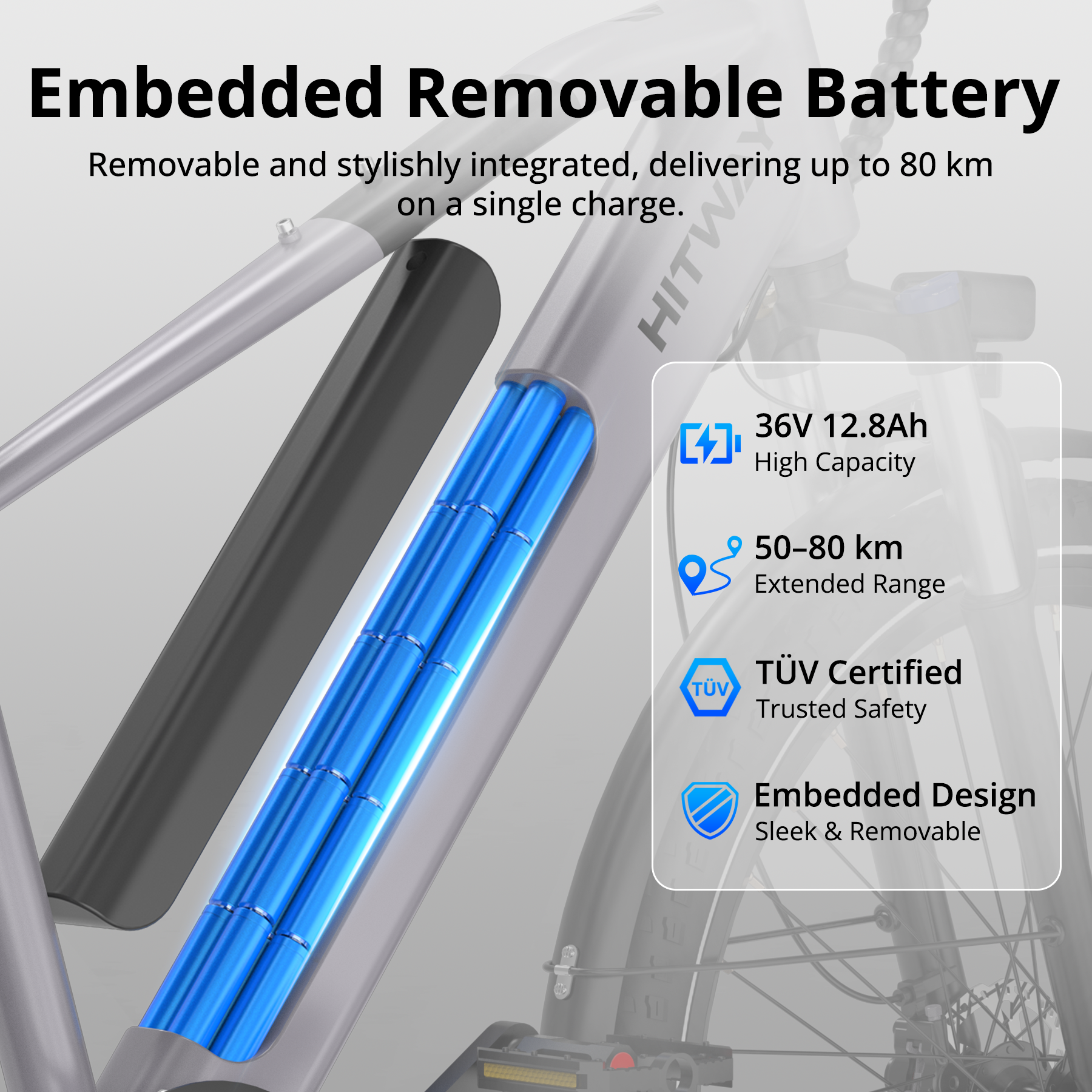 Enjoy worry-free journeys with HITWAY’s high-capacity 36V 12.8Ah lithium battery, offering up to 80 km of range on a single charge. Perfect for daily commutes or weekend adventures, it keeps your ebike ready for every ride without constant recharging.