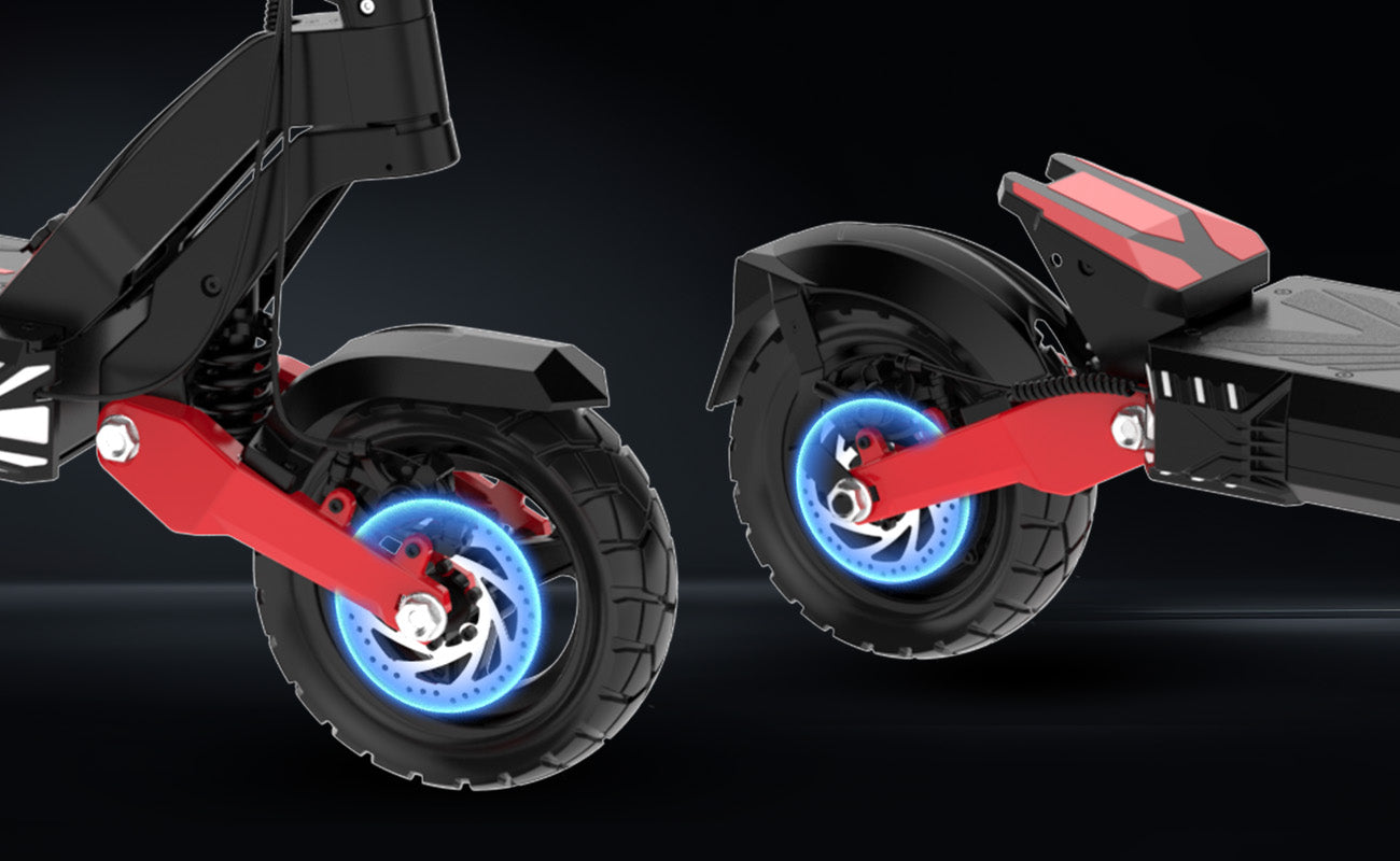 The HITWAY H10 electric scooter offers powerful performance with a 1600W motor peak power and high-strength materials, ensuring a smooth and stable ride. The double shock absorption system, along with the user-friendly frame design, makes this scooter both reliable and convenient for daily commutes.