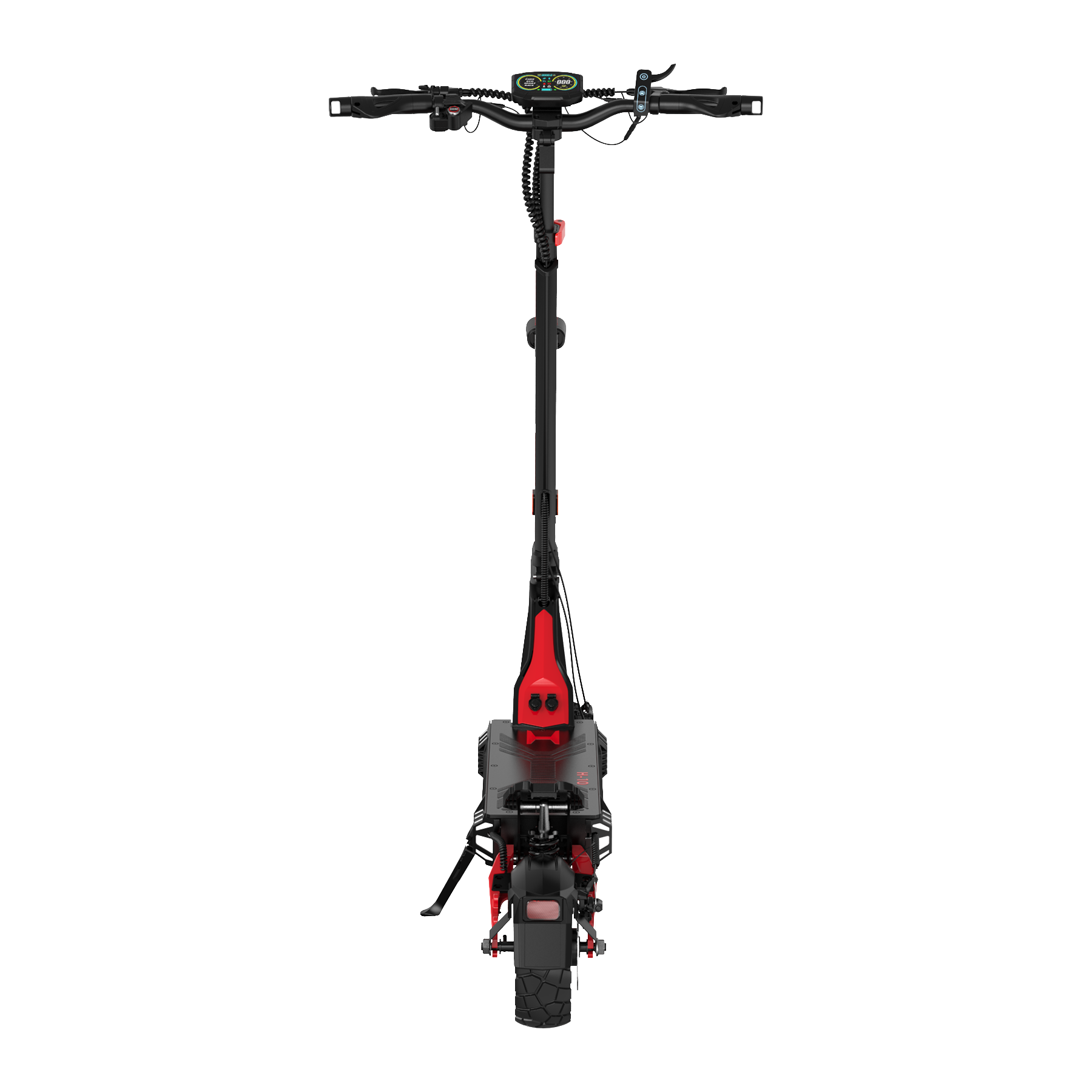 Front and rear swingarm suspension absorbs bumps and shocks, ensuring a stable and comfortable ride on any terrain.